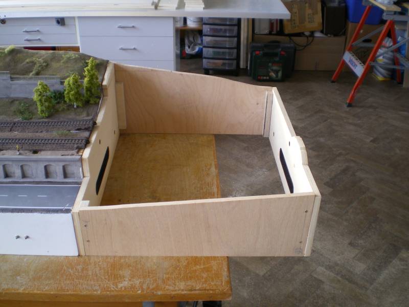 Das zweite Modul wurde zunächst als Rechteckkasten mit Deckel hergestellt, die Geländekonturen werden später angepasst.