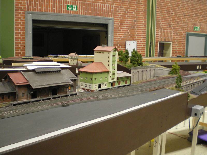 Das zweite - im Abstand zu weite Gleis - wurde bereits entfernt um noch etwas Platz zu schaffen für zwei weitere Gleise. Das vordere Gleis wird im Endausbau die durchlaufende Hauptstrecke.