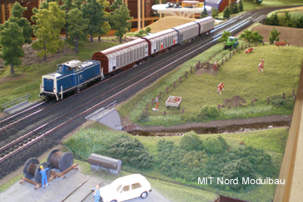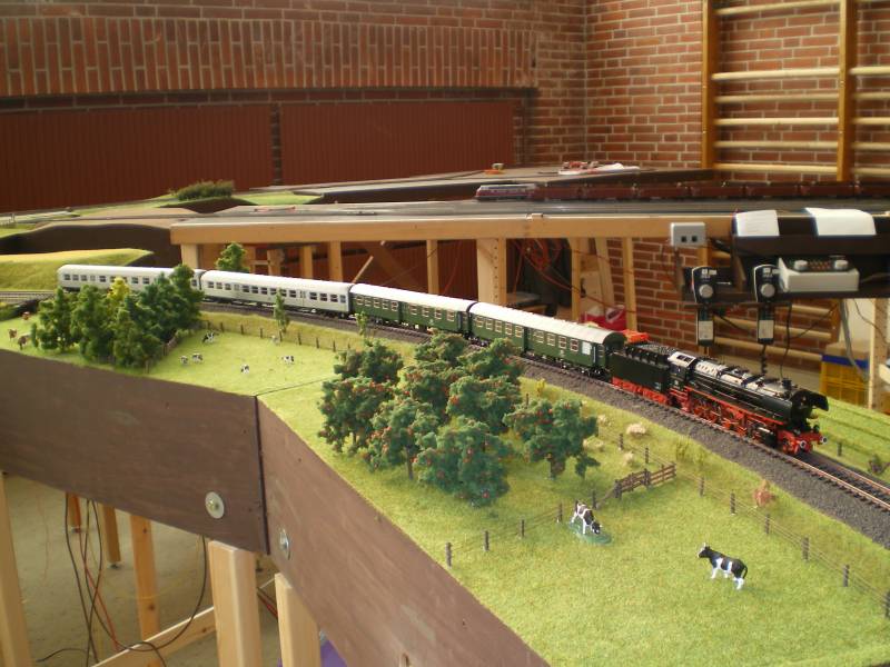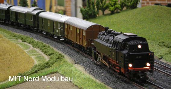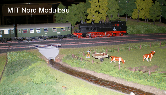 Hallo zusammen, auf dieser und den folgenden Seiten möchten wir ein paar Fotos zeigen, die dem interessierten Modellbahner einen Eindruck von der bereits vorhandenen Modulanlage vermitteln sollen... Zunächst ein Überblick vom Treffen zu Ostern 2012 .