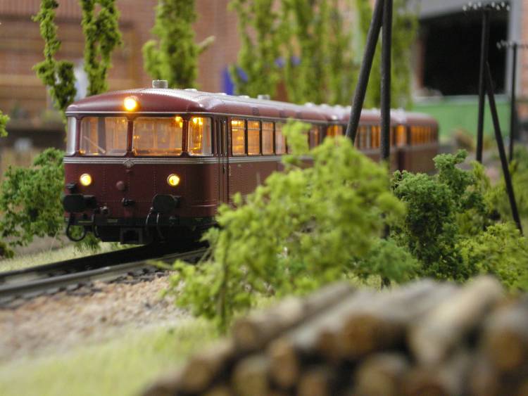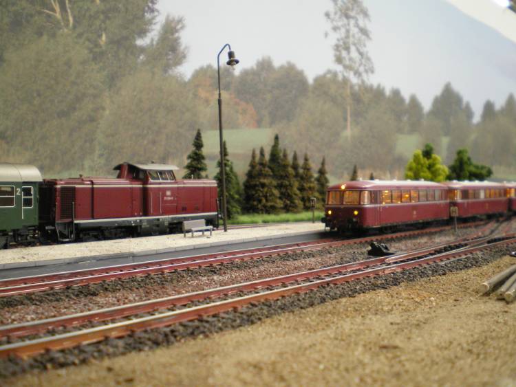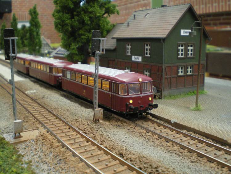 Der VT 98 steht im Bahnhof "Ömpe" zur Abfahrt bereit und ist kurz danach....