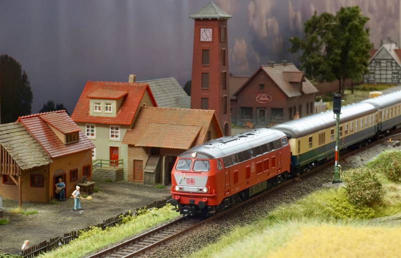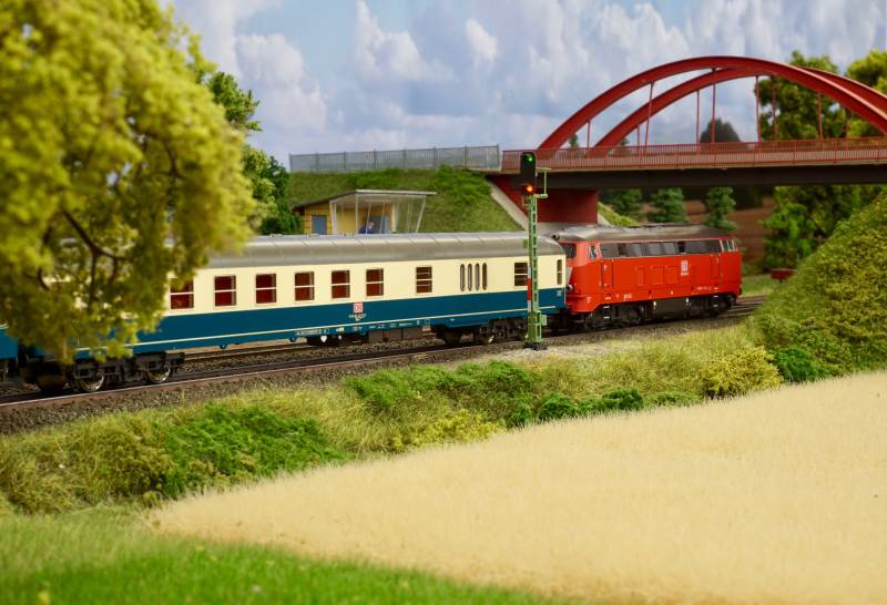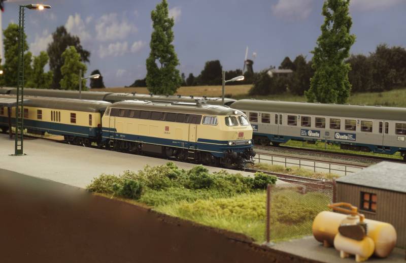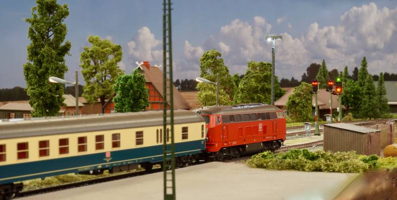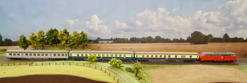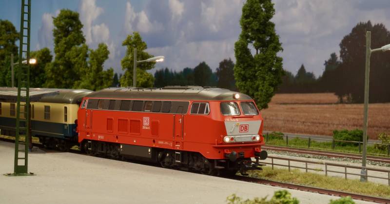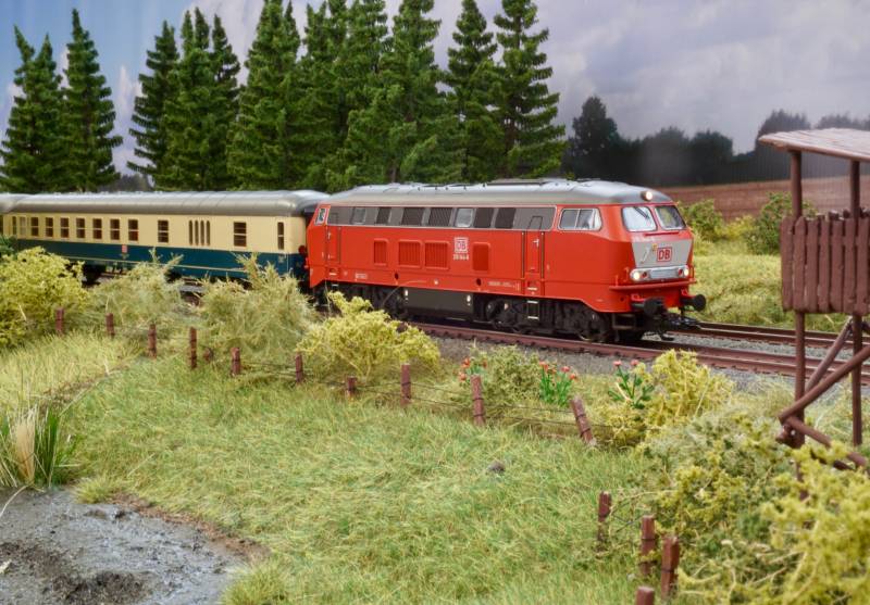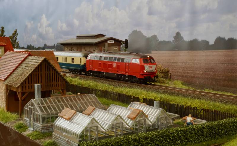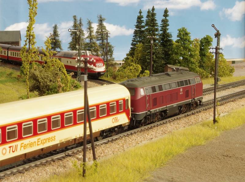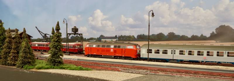 .....BR 218 mit Schnellzug im Bhf. Hainstedt.....