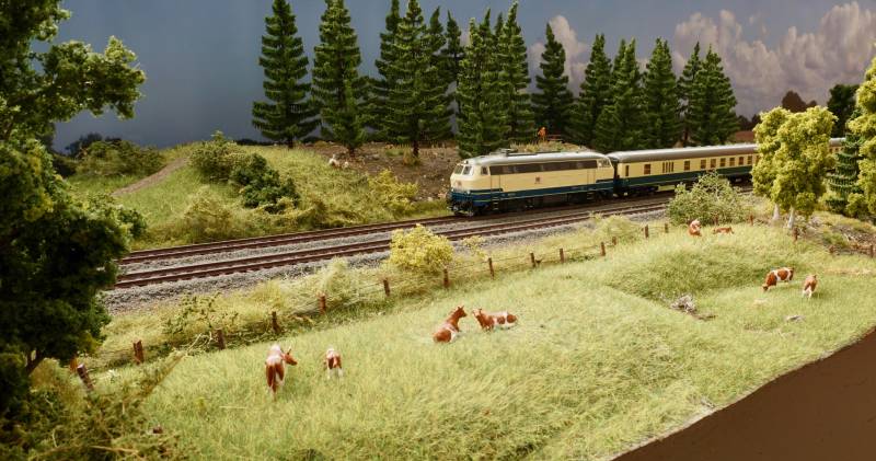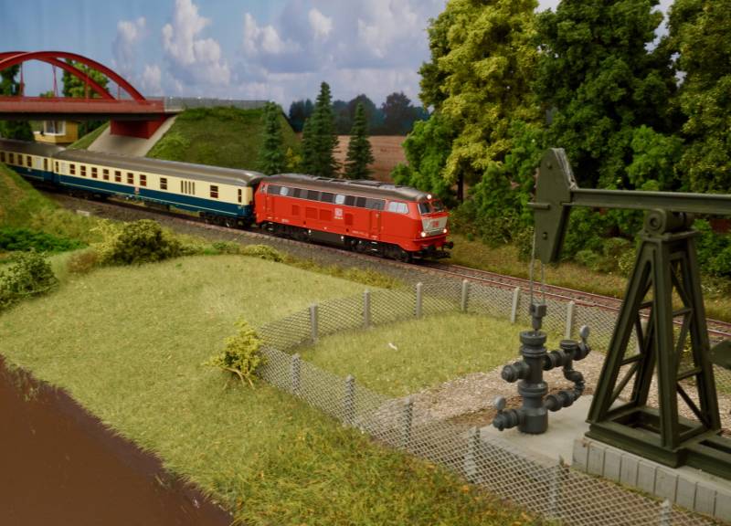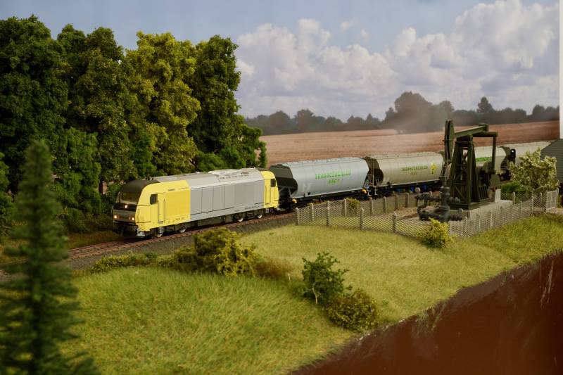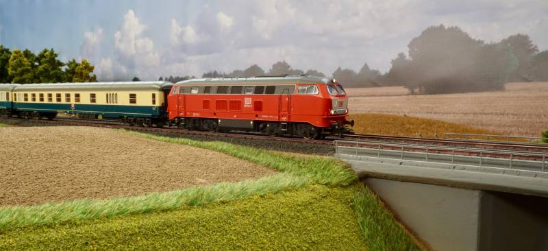 noch einmal der ER 20 mit Getreidezug auf der Strecke Die BR 218 war auch zu Anfang der Epoche 5 noch in blau beige unterwegs....