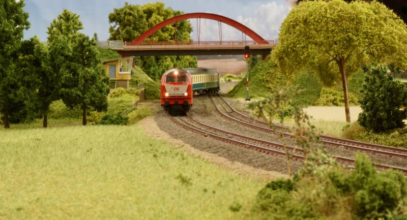 .....BR 218 mit Schnellzug aus Ömpe ausfahrend.....