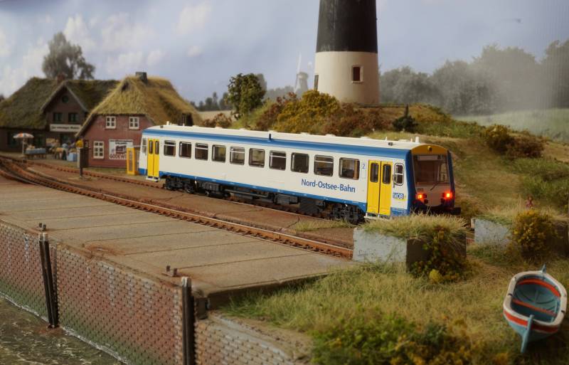 ...und ein moderner Triebwagen der NOB am Haltepunkt in Klöbensiel....