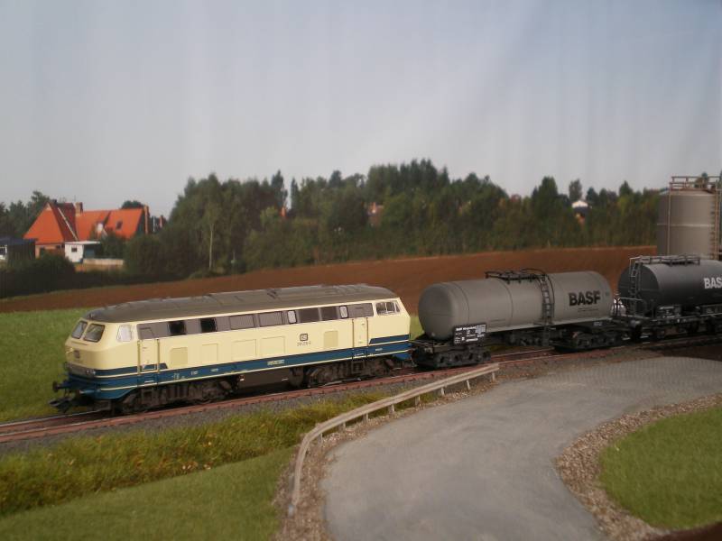 Zunächst sehen wir die BR 218 mit einem Kesselwagenzug