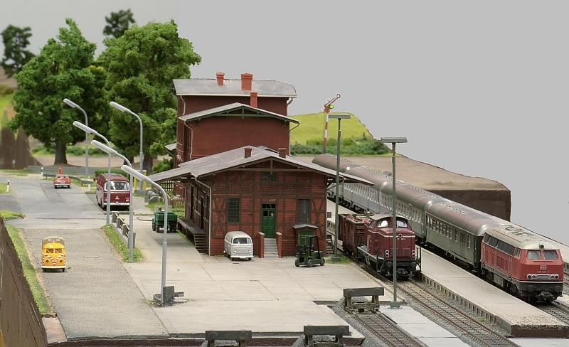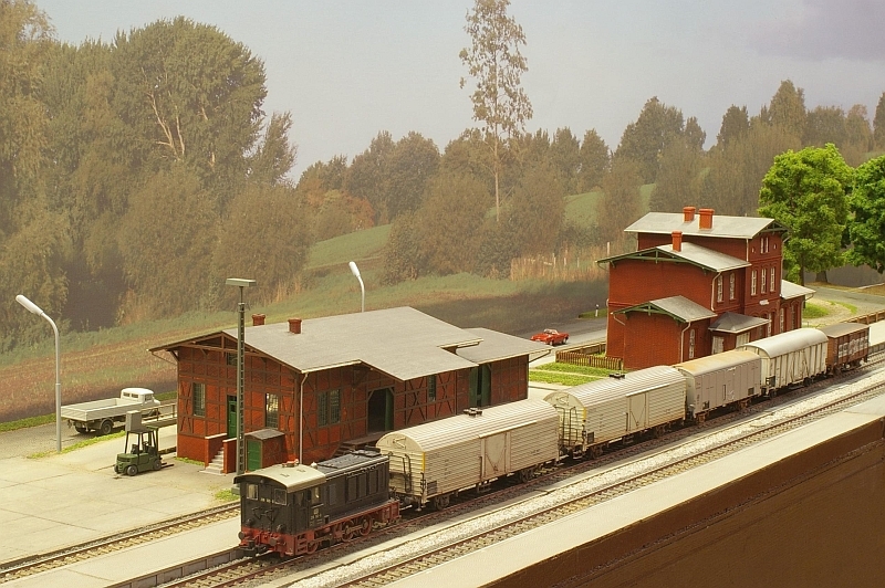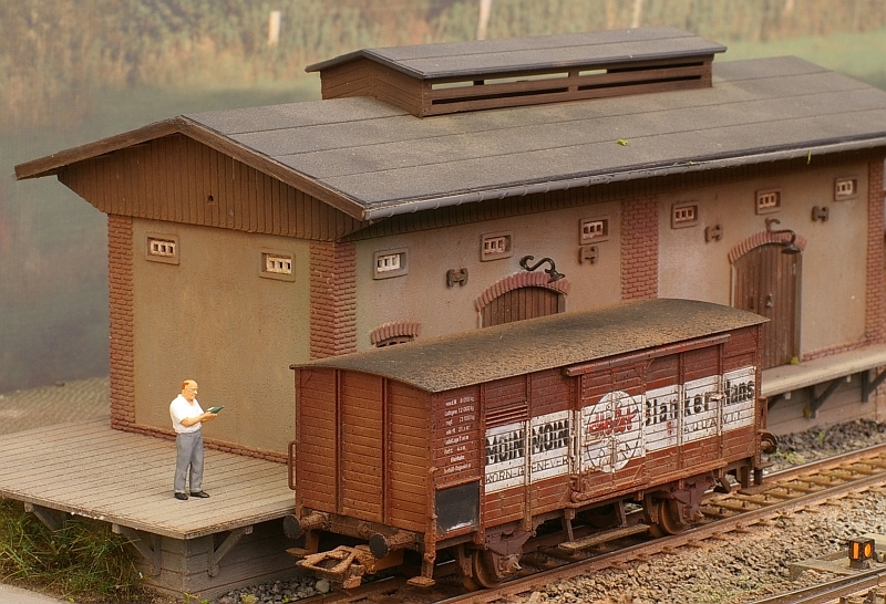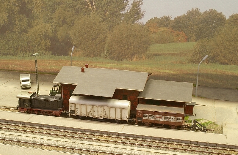 ....die vor Ort stationierte Köf stellt den G 10 an die Laderampe vom Ortsgüterschuppen.....