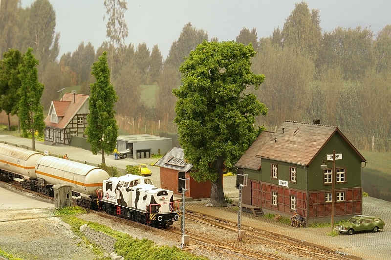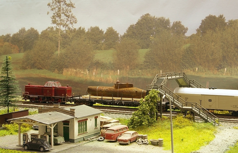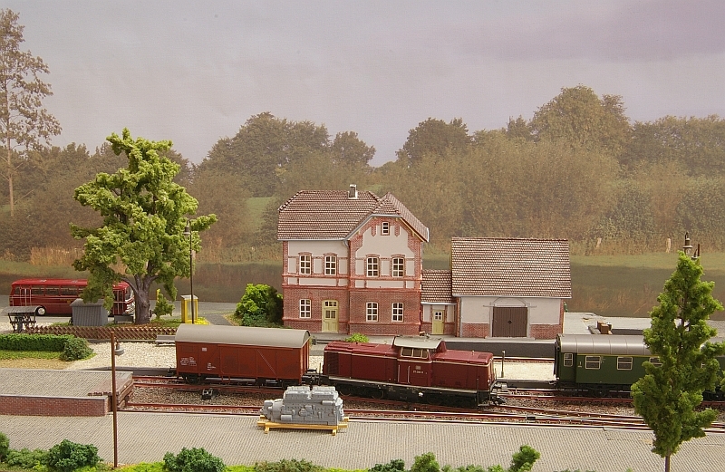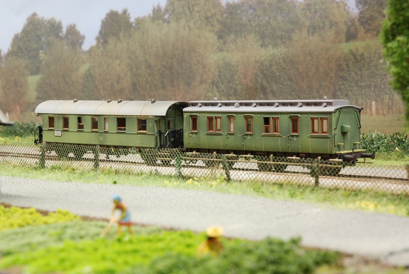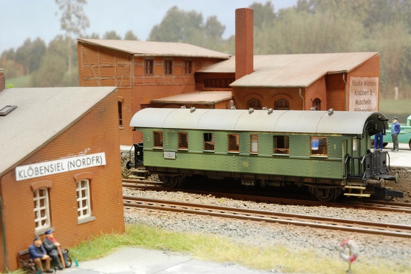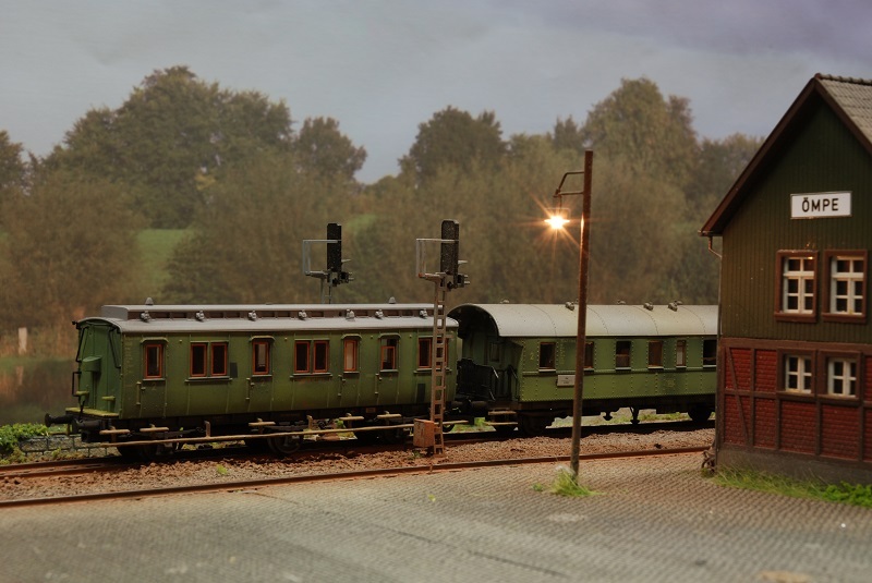 sehr schön gealterte "Donnerbüchse" und "Abteilwagen" im Bahnhof "Ömpe"