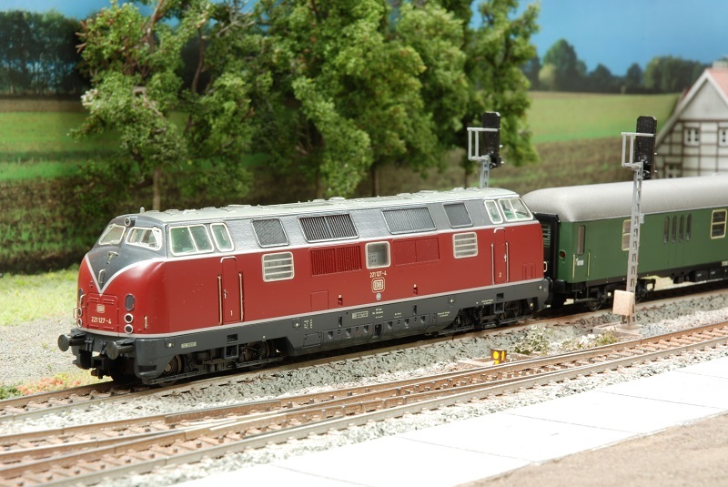 BR 221 mit D-Zug im Bahnhof Ömpe