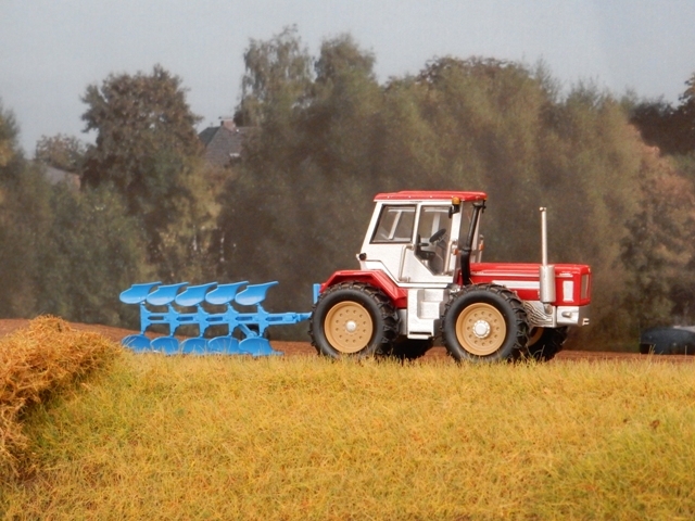 moderner Traktor mit Doppelscharpflug