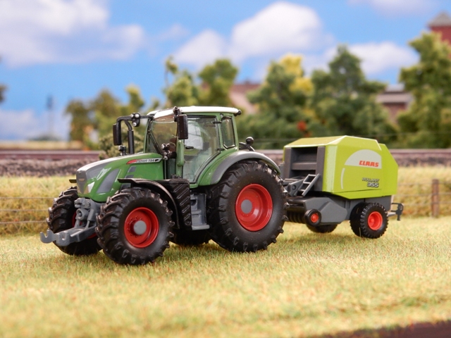 ganz moderner Traktor mit Rundballenpresse