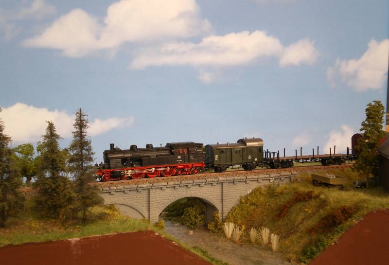 BR 78 mit Güterzug auf dem Viadukt über die "Ömper Au"