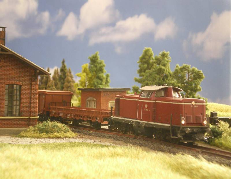 V 100 mit Übergabe in Petersdorf einfahrend