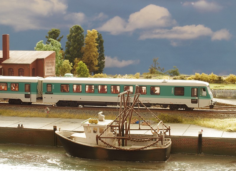 Nahverkehrszug aus Klöbensiel - Hafen ausfahrend
