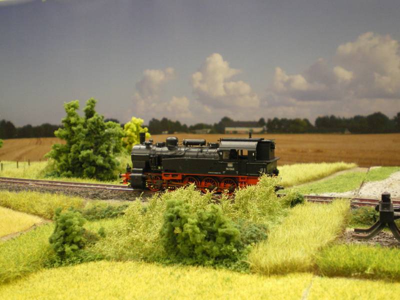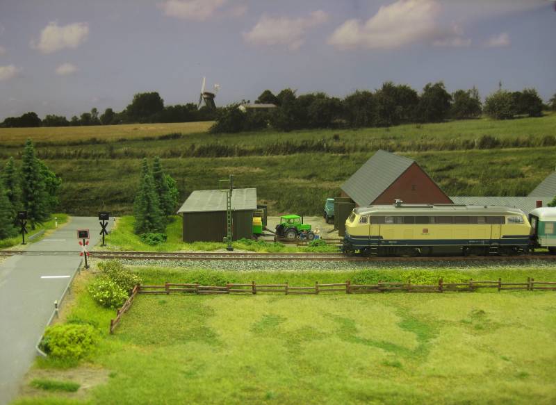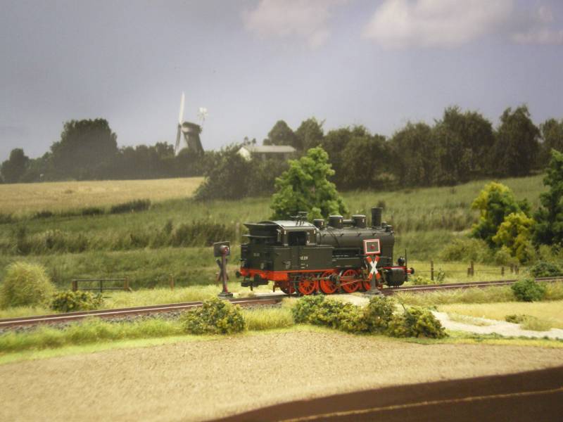 ...hier sehen wir eine BR 92 an einem Bahnübergang.