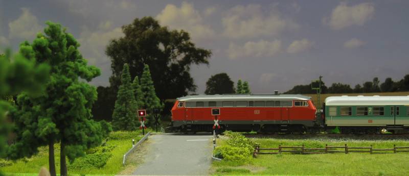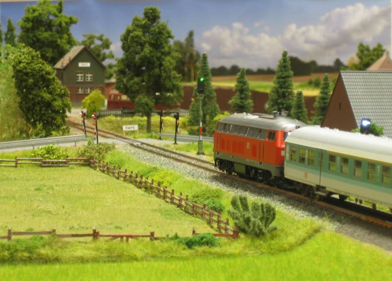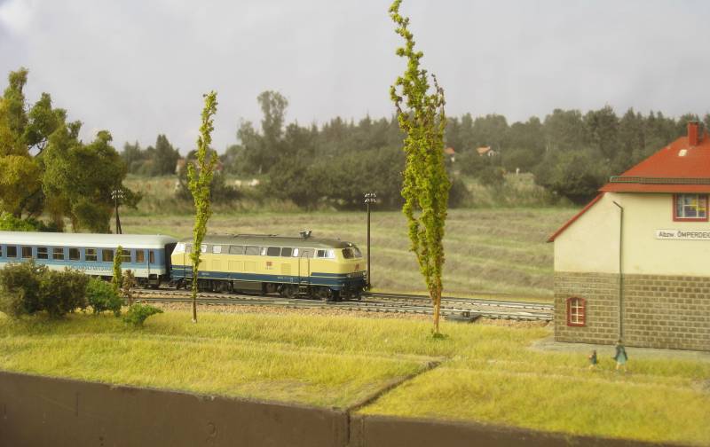 BR 218 mit Regionalexpress am Abzweig Ömper Deich