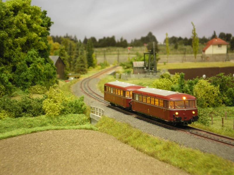 Schienenbus der BR 798 aus Ömpe ausfahrend