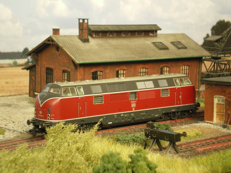 BR 218 mit Nahverkehrszug vor dem Einfahrsignal