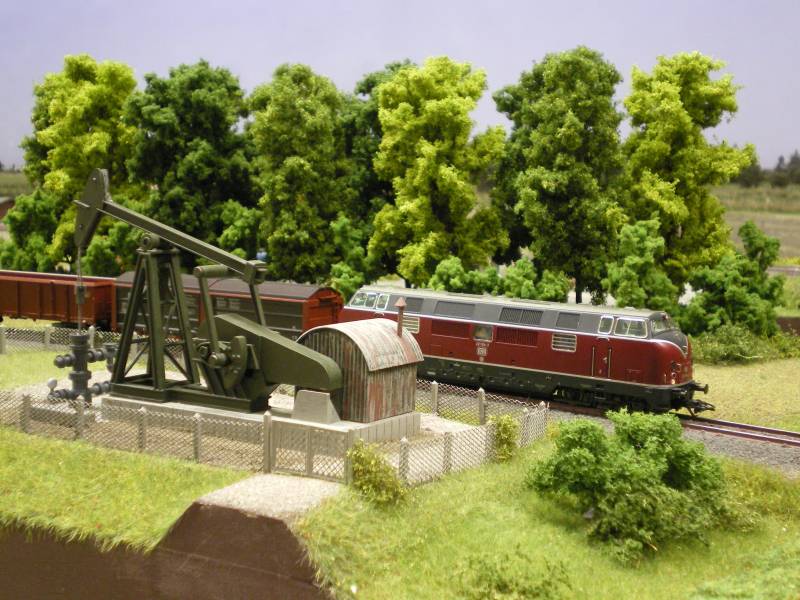 ...und fährt vorbei an einer Ölförderpumpe in Richtung Zielbahnhof.