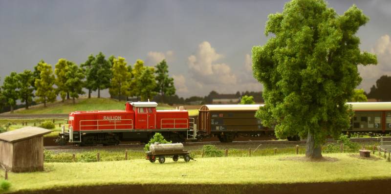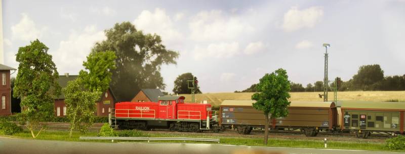 Die DSB Lok mit einigen Güterwagen im benachbarten Anschluss