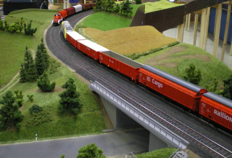 Hallo zusammen, auf dieser Seite gibt es weitere Fotos von meinen Streckenmodulen, die ich im Laufe der letzten Jahre gebaut habe. Zunächst habe ich zweigleisige Streckenmodule gebaut, in letzter Zeit sind aber auch eingleisige Module dazu gekommen. Hier zunächst ein Ausschnitt von meinem ersten zweigleisigen Modul: