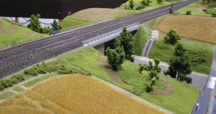 Es folgt ein weiteres zweigleisiges Streckenmodul, dieses Mal mit einem Brückenbauwerk: