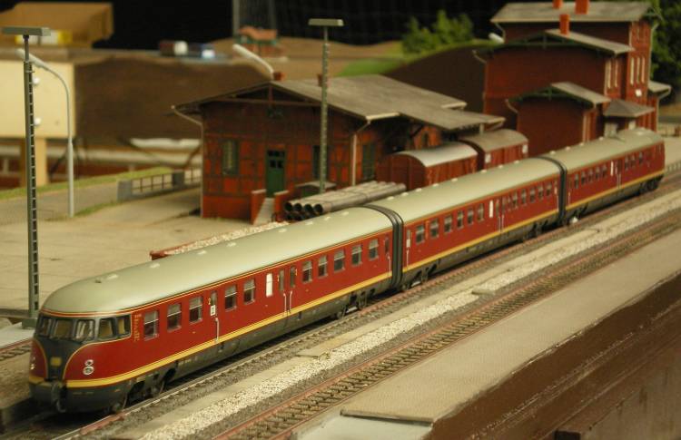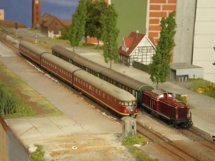 VT bei einer Zugkreuzung im Bahnhof Ömpe
